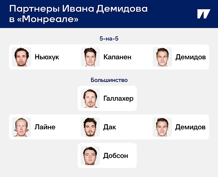 Ивана в новом клубе сразу рассматривали как самоценного игрока. Никто не собирался давать ему топовых партнеров, чтобы облегчить адаптацию в НХЛ. Демидов сам должен был зажигать и прокачивать остальных. Тем более, в «Монреале» уже собрали сыгранное первое звено Кофилд – Сузуки – Слафковски, и тренеры явно не горели желанием его разбивать.