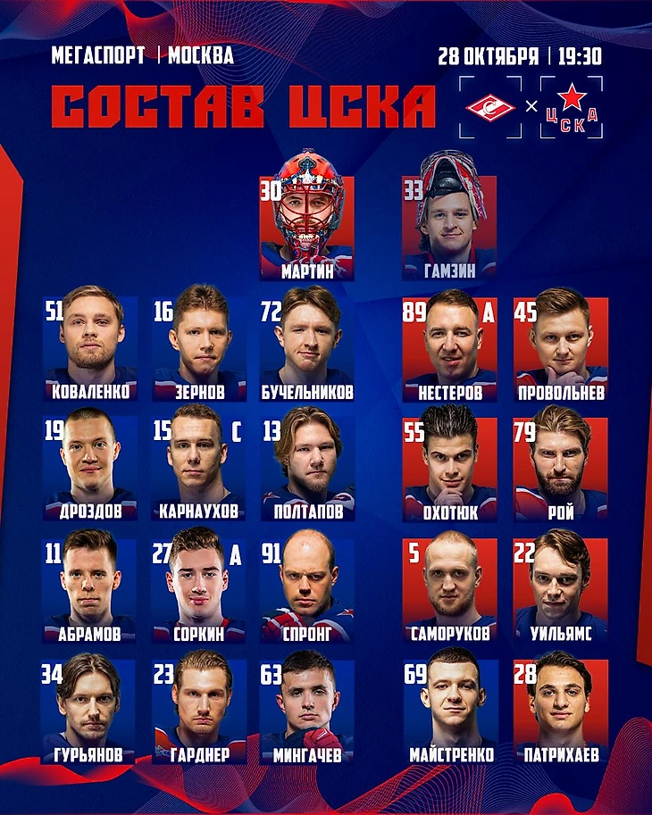вчера, 15:35 1 мин. Состав спартаковцев на сегодняшнее дерби против ЦСКАКоля СтрогоновАвтор59 подписатьсяСостав наших соперников:Спартак
