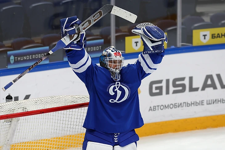 Самый молодой вратарь в истории КХЛ играет в сине-бело-золотом шлеме. На правой части – золотой орнамент и храм, на левой – герб России. Сверху нанесена эмблема «Динамо», на подбородке – прозвище вратаря «Селиван» на латинице. Отметим, что лицо 17-летнего голкипера по правилам защищает по-прежнему белая маска-клетка, а не привычный во взрослом хоккее «кошачий глаз».