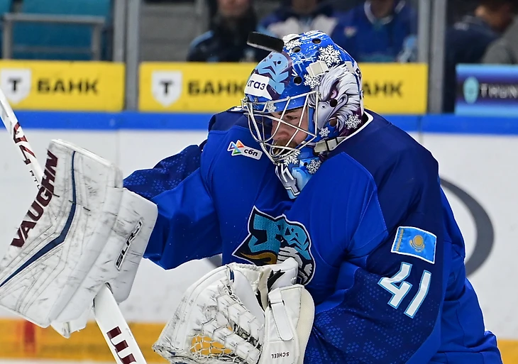 У Адама Шила, присоединившегося к «Барысу» в сезоне 2025/2026, шлем выполнен в цветах команды. На верхней части маски логотип клуба, на подбородке номер 34, хотя играет Шил под 41. Этому есть объяснение: маска переехала с голкипером из Америки, где он выступал за «Колорадо Иглз». А на лбу под эмблемой «Барыса» скрывается лого прошлого клуба. Такая адаптация.