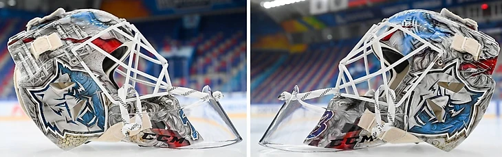 В обновлённом шлеме Иван Кульбаков сделал акцент на талисмане «Торпедо» – олене. Если справа изображён суровый олень с логотипа нижегородцев, то слева – грациозный образ этого зверя. Маска Кульбакова – единственная, на подбородке которой не нанесены номер или прозвище вратаря.