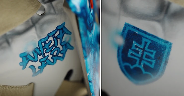 Ещё одна ключевая идея дизайна – кровь на белом. Белая сетка и тканевые крепления маски как будто забрызганы кровью. Логотип «Автомобилиста», след протектора колеса, номер «18» на подбородке и надпись «GO.ALI.E» на верхней части также выполнены с кровавыми элементами.