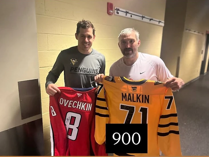 А Евгений Малкин обменялся с Овечкиным свитерами после матча. Причем, как сообщают репортеры, в раздевалку «Кэпиталс» заходил пообщаться и Кросби.