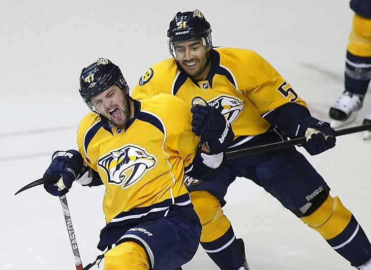 В 20 лет Радулов дебютировал в НХЛ. В сезоне-2006/07 в составе «Нэшвилла» россиянин отметился 37 (18+19) очками в 64 матчах регулярки и 4 (3+1) в четырех играх плей-офф, а в сезоне-2007/08 — 58 (26+32) в 81 матче регулярки и 4 (2+2) в шести играх плей-офф.