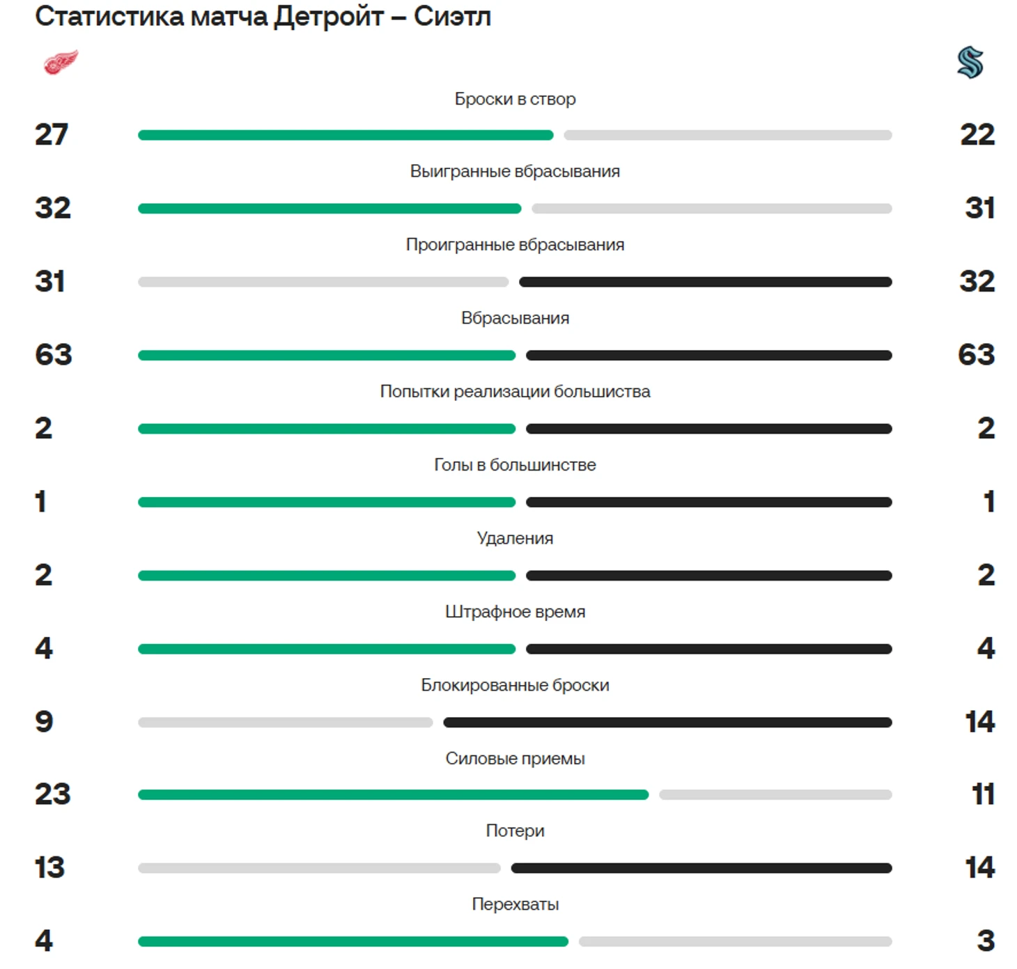 Статистика игры получилась примерно равной — вот только самый интересующий параметр оказался за «красно-белыми»: 23 силовых приема против 11. В первых двух периодах зачастую создавалось ощущение, что наш коллектив выступает 6 на 5. «Кракен» не давал боя — но счет магическим образом повернулся в их пользу после ненужного удаления Эдвинссона, который излишне рьяно бросился защищать Эпплтона.