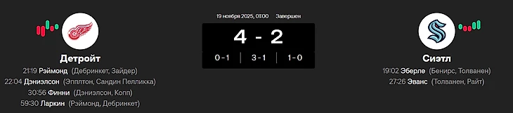 Селебрини, Бедард... а как же Дэниелсон? Новичок «Детройта» — первая звезда победного матча с «Сиэтлом»