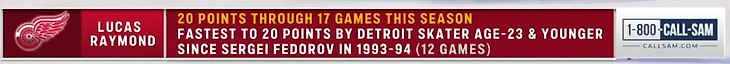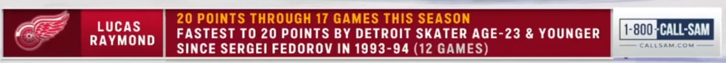Третий период «Ред Уингс» решили играть в откат (5-7 по броскам между командами). По словам тренера, ему казалось, что в игре отсутствовал четкий ритм, и она шла до трех шайб. Не знаю, было ли это так, но счет мы удержали — более того, Ларкин успел забить в пустые. Очередное очко для Рэймонда, который идет в темпе молодого Федорова!