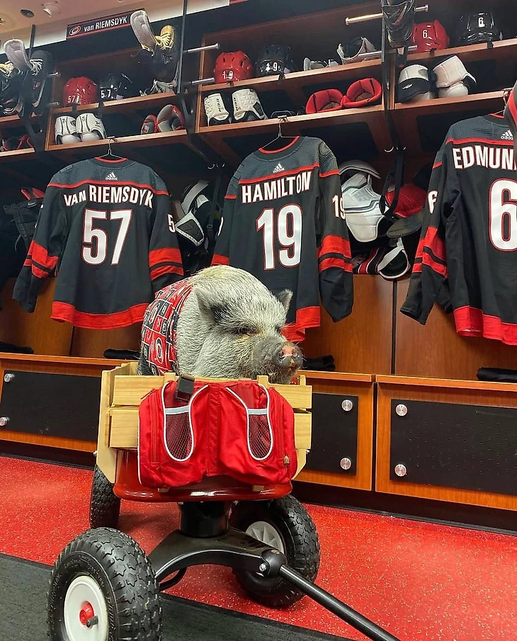 Вы могли позабыть, но шесть лет назад у «Каролины» появился необычный маскот: у него четыре лапы, пятачок, забавный окрас и собственный комплект клубного мерча. При этом речь не про ростовую куклу – а о настоящем поросенке Хэмилтоне, который, как уверены фанаты, принес удачу клубу в 2019-м.