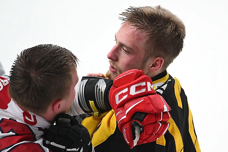 Лидеры Запада сошлись в очном матче и выдали не самую яркую игру с точки зрения счета. «Северсталь» выиграла у «Локомотива» (2:0), но главные события случились уже после сирены. Практически все находившиеся на льду хоккеисты устроили мощную потасовку за воротами Череповца. Она вылилась в драку Егора Сурина и Александра Скоренова.