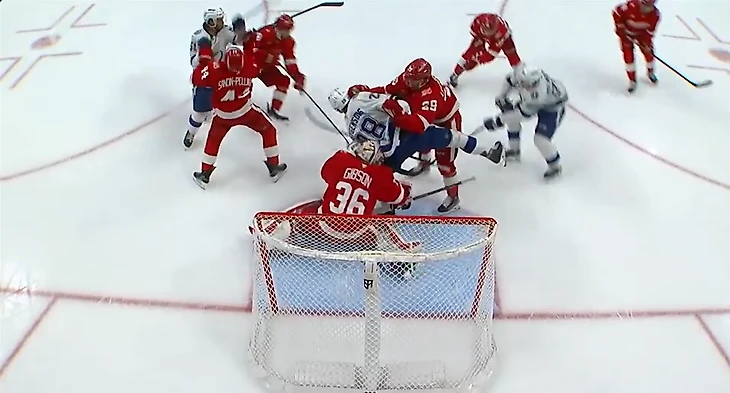 Сначала о хорошем: «Детройт» действительно доминировал в первом периоде, причем не только впереди. Если пересчитывать количество выходов 2 в 1, то не хватит пальцев одной руки. Кейн был близок к голу дважды, однако совершил невозможное — не забил еще один простейший гол в пустые в этом сезоне.