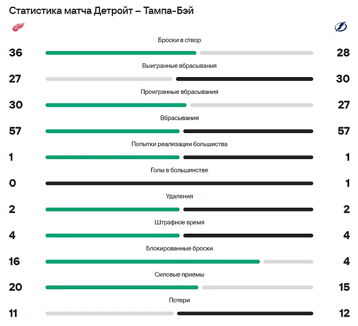 «Детройт» пытался брыкаться: были шайбы Расмуссена и Ларкина, достаточно неплохие по качеству, но недостаточные по количеству. «Тампа» лишь продолжала укреплять преимущество, ну а красно-белые защитники ошибаться. Пришел черед и Эдвинссона, который спокойно позволил чистейшее перенаправление в ворота.