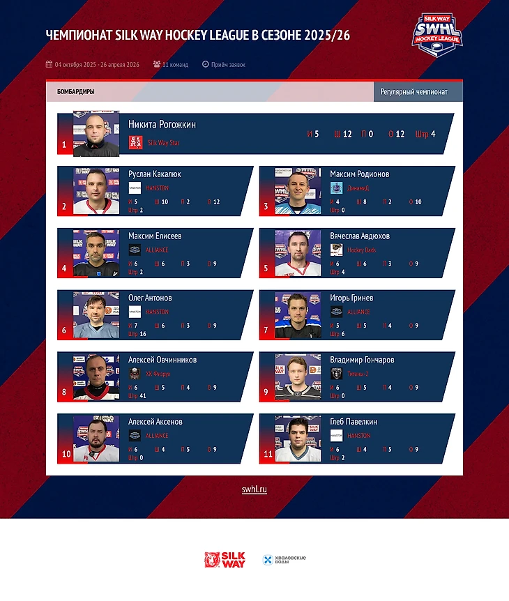 ТОП-11 бомбардиров после седьмого тура чемпионата SWHL 2025/26