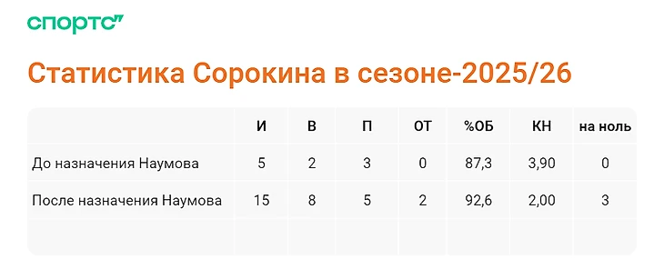 Приход Наумова преобразил Илью, который постепенно начал возвращать себе былые кондиции. Разница в статистике просто колоссальная. Если что, у Риттиха цифры тоже сменились в лучшую сторону.