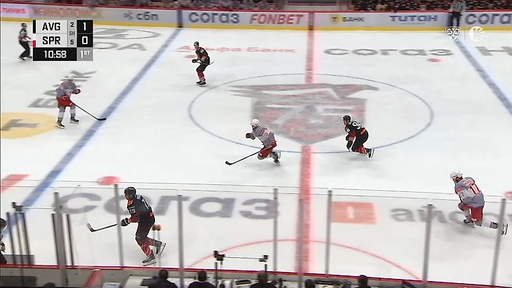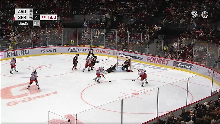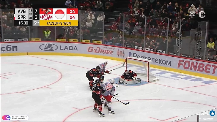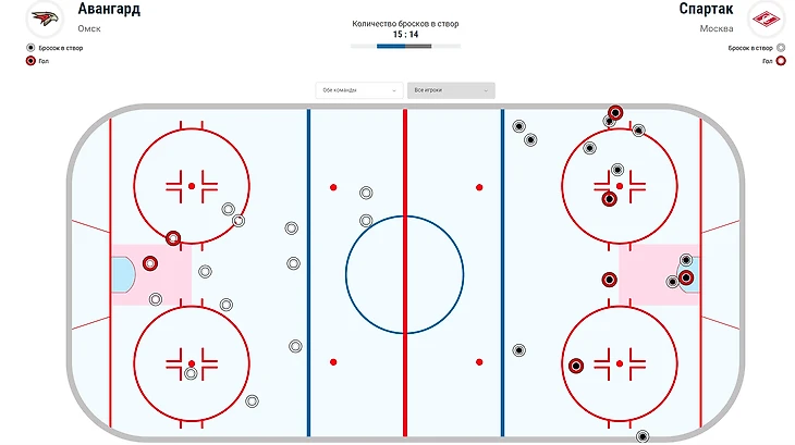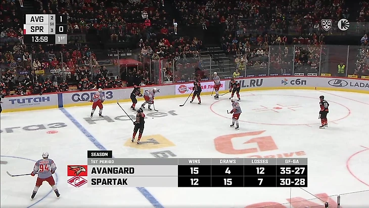 В один из моментов на телевизионный экран была выведена статистика по периодам, где было отчетливо заметно, что команды значительно шатко играют в этих отрезках: 15 на 12 (победы — поражения) было у «Авангарда» и 12 на 7 — у «Спартака». Продолжать подтверждать свои цифры «ястребы» принялись спустя несколько минут после появления плашки.