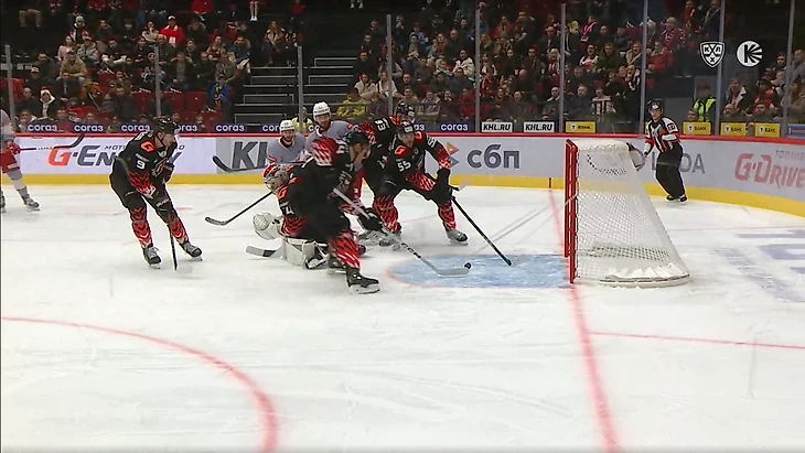 Началом голевой феерии послужила, казалось бы, безобидная ситуация. Бычков въезжал в зону омичей по борту, стараясь найти лазейку и прострелить на своего. Обычная атака, которая могла иметь продолжение в виде броска по воротам «хозяев». Но в этой игре все было куда интереснее. Почему-то в момент потенциальной передачи сразу три форварда «Спартака» оказались в одном месте на «пятачке», не разобравшись в том, чья это будет шайба. Накативший туда Рубцов вообще дезориентировал Коростелева, с которым в дальнейшем он побежал назад.