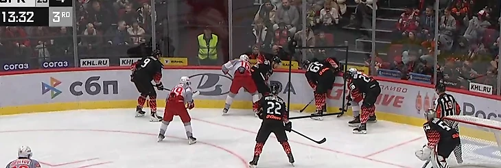 Четвертая заброшенная шайба от «Спартака» (ее автором стал Ружичка) наглядно показала, что нужно быть на 100% в игре всегда. После выигранного вбрасывания у Гуляева получилась не самая удачная передача на Чистякова, который, выйдя на хорошую позицию, не смог вывести снаряд из зоны, что привело к распасовке между Морозовым и Ружичкой, где последний на коротке переиграл Серебрякова и подарил призрачный шанс своей команде на возможность сравнять счет.