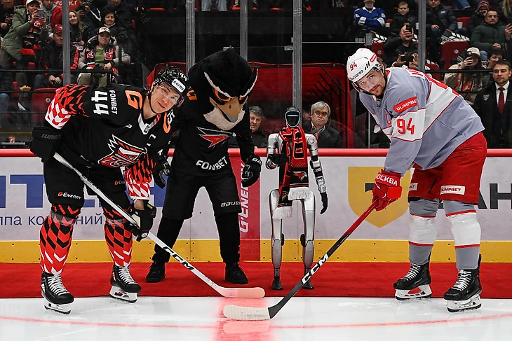 Забавно, что на символическое вбрасывание на этот раз пригласили не какого-нибудь известного певца или актера. На игре «Авангарда» и «Спартака» таким гостем стала другая перссона: робот Игорь.