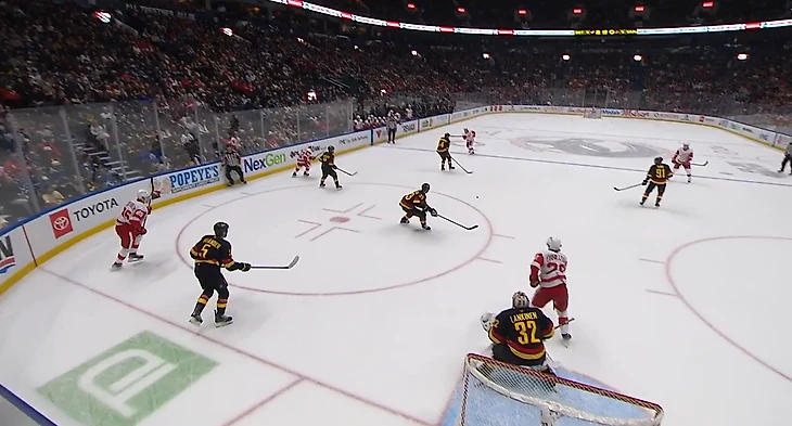 После трех очков в двух матчах, «Детройт» пожаловал в Канаду, чтобы сразиться с местными коллективами, начиная с «Ванкувера». Игру можно было бы очертить рядовой, одной из тех, которую нужно было брать надежно, ибо «Кэнакс» штормит на всех фронтах — травмы выбили ключевых центровых, а Куинна Хьюза не пытался теоретически обменять только ленивый, причем главным пунктом назначения в этих слухах является как раз город моторов.