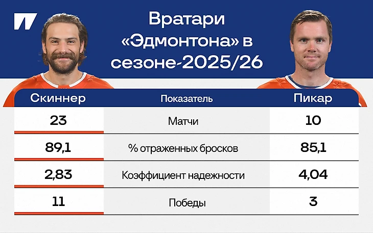 Если говорить конкретно о последних годах, то все трое голкиперов, которых задействовал «Эдмонтон» в прошлом сезоне, ушли в минус. Второй номер, Кэлвин Пикар, наиграл аж на 9,1 лишнего гола. В плей-офф, конечно, таких цифр уже не было, но и о сверхнадежной игре говорить не приходится: Скиннер отыграл в ноль, Пикар пропустил 2,0 гола сверх ожидаемого. Для сравнения: их соперник по финалу Сергей Бобровский спас «Флориду» от 11,9 шайб.
