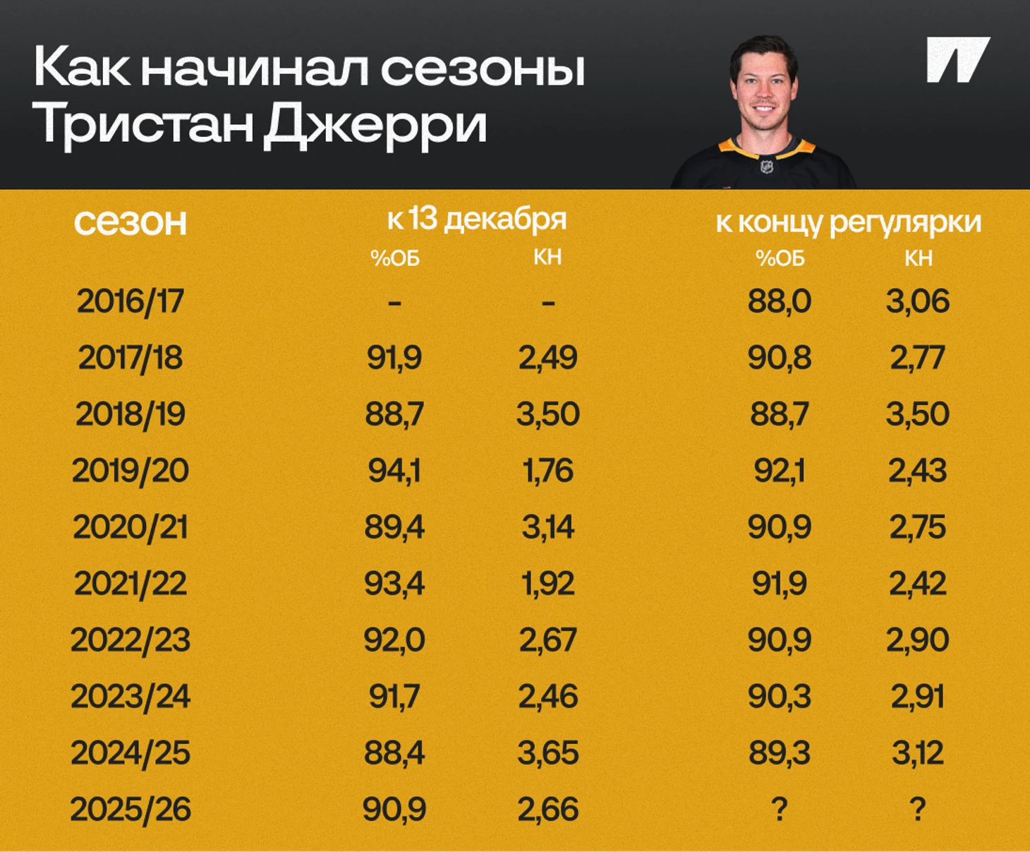 Джерри хорош в этой регулярке – и со стороны может показаться, что это победа «Ойлерс». Но есть нюанс: вратарь всегда начинает хорошо (за исключением прошлого сезона), а дальше у Тристана традиционно случается просадка:
