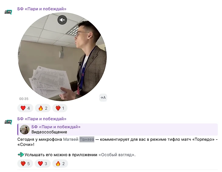 Для меня этот разговор с Матвеем – еще одно подтверждение, что наш проект работает не только «про доступность» в узком смысле. Да, тифлокомментирование дает незрячим болельщикам возможность быть на матчах и по-настоящему проживать игру вместе со всеми. Но параллельно он открывает и новые имена – людей, которые уже сейчас формируют язык и стиль доступного для всех спортивного комментария будущего.
