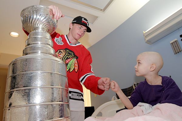 Патрик Кэйн, у которого Кубок гостил два года назад, навестил в больнице больного раком юного фаната, чьим последним желанием в жизни было увидеть Кубок Стэнли.
