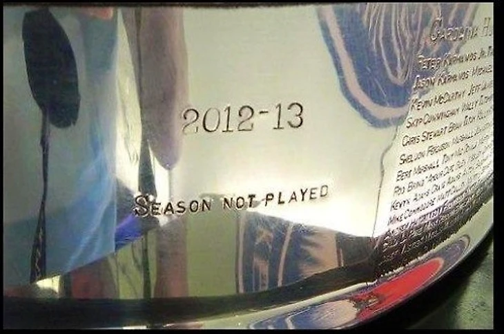 P.S. Как оказалось позже - это фотошоп) Спасибо моим читателям за эту подсказку. Да и невнимательно я посмотрел на эту запись - рядом с ней же "Каролина Харрикейнз", победитель Кубка Стэнли 2006 года. А это означает, что рядом с 2005-2006 должен быть 2004-2005. Ну а там и так понятно, что было...