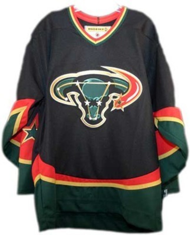 Казалось бы - чёрный цвет, силуэт быка (не забываем о ковбойской сути штата), объединённый с одноименным созвездием (а вот и звёзды!) должны все вместе смотреться вполне героически. Однако, получилась настолько дичайшая вещь, что её стабильно включают в пятёрку абсолютно худших форм в истории НХЛ. Помимо "неправославного" красного цвета, смотревшегося абсолютно не к месту, подкачал логотип - фанатам он напомнил не что иное, как диаграмму строения женской матки. Это был полный финиш, и новая форма продержалась всего 2 сезона, с тех пор изрядно отбив у руководства клуба желание что-либо "усложнять" в вопросах дизайна.