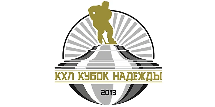 Судя по знакомому изувеченному шрифту и слабой светотени, эмблему Кубока Надежды рисовал тот же автор. Я просто-напросто не понимаю — почему форма постамента такая? Это неваляшка? Что за турбина позади фигуры? Что за рандомный выбор предметов и непоследовательность решений? Почему хоккеист так хреново нарисован?