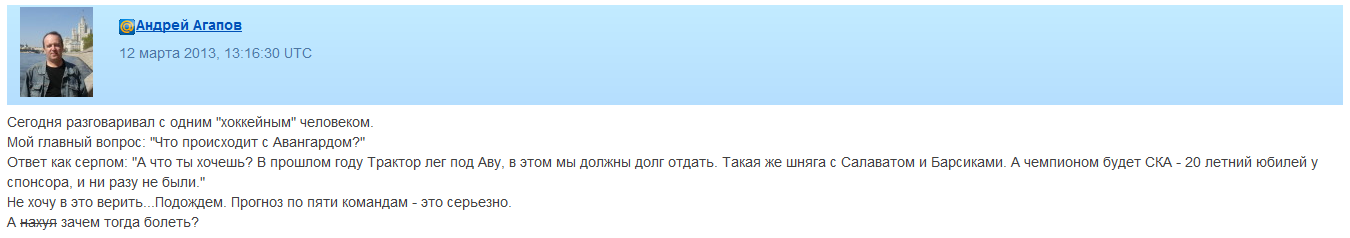 P.S. Кстати, омич, облажавшийся с прогнозом всячески кается ру_хоккее.