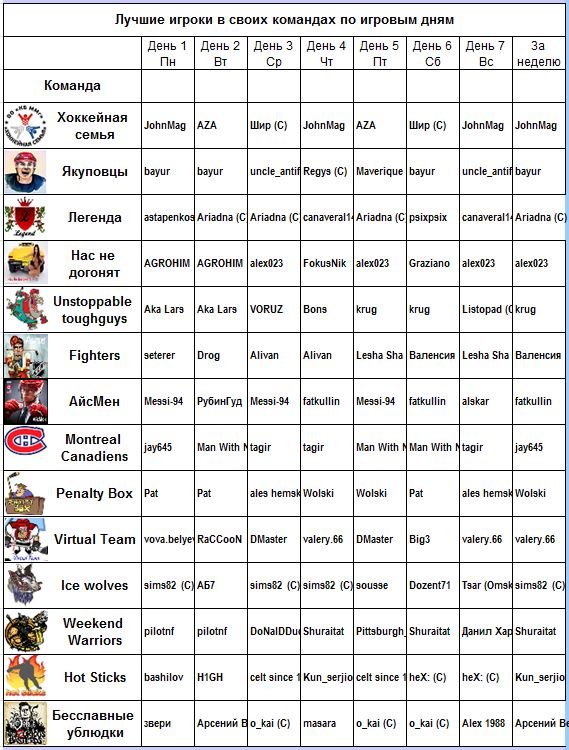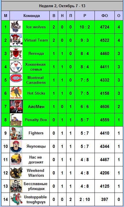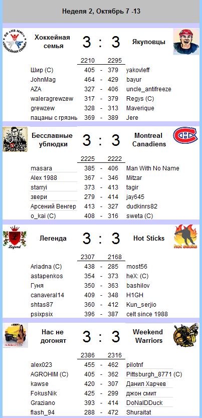 Итоги второго тура Team Head to Head NHL 2013/2014