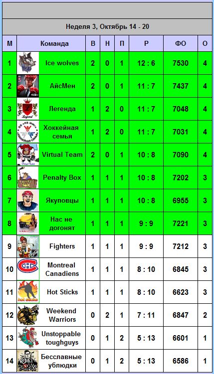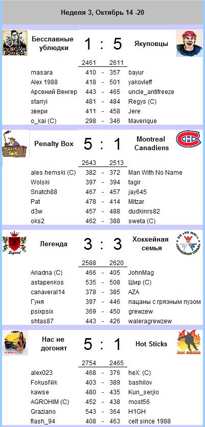 Итоги третьего тура Team Head to Head NHL 2013/2014