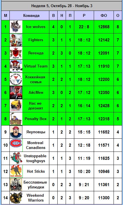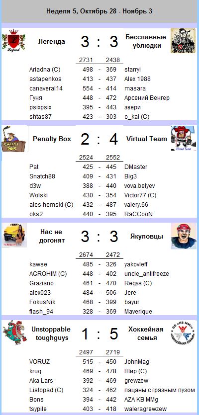 Итоги пятого тура Team Head to Head NHL 2013/2014