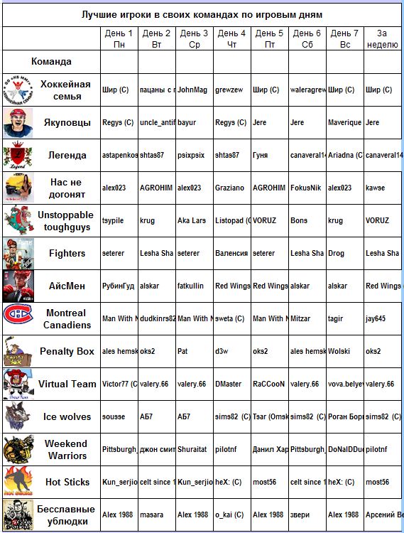Самые результативные игроки (становившиеся лучшими в своей команде по итогам недели):