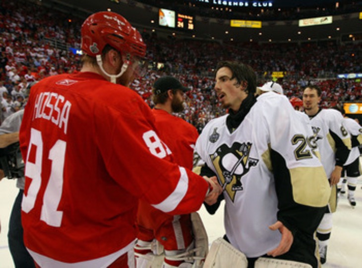 После победы в кубке Стэнли Детройт не стал слабее скорее наоборот - летом команду пополнил звёздный форвард Мариан Хосса. Крайне редко такое бывает, но в финале снова в оппоненты достался Питтсбург.