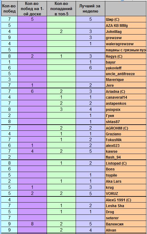 Самые ценные игроки (одержавшие наибольшее число побед):