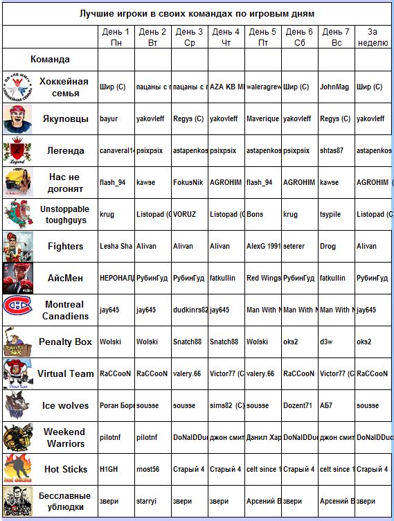 Самые результативные игроки (становившиеся лучшими в своей команде по итогам недели):