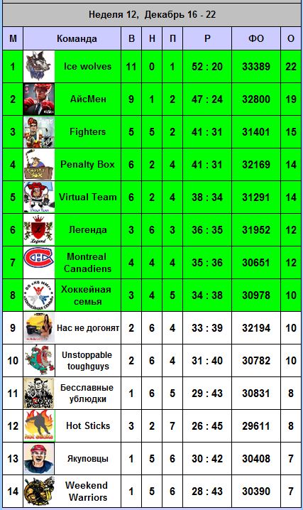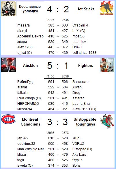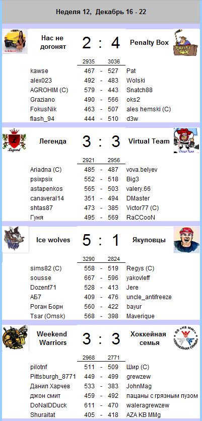 Итоги 12-го тура Team Head to Head NHL 2013/2014