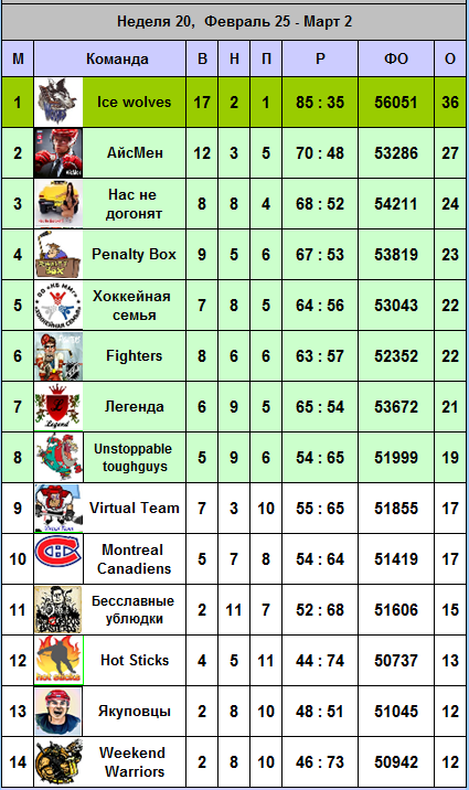 Итоги 20-го тура Team Head to Head NHL 2013/2014