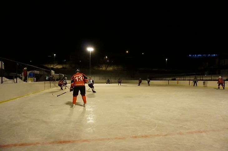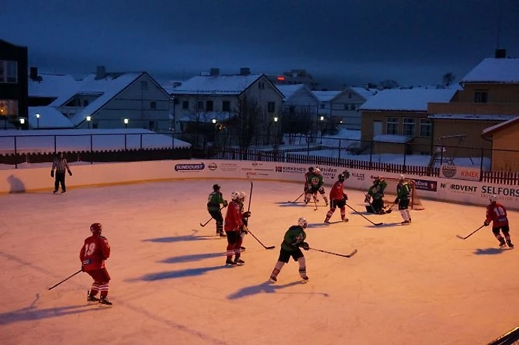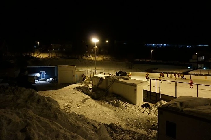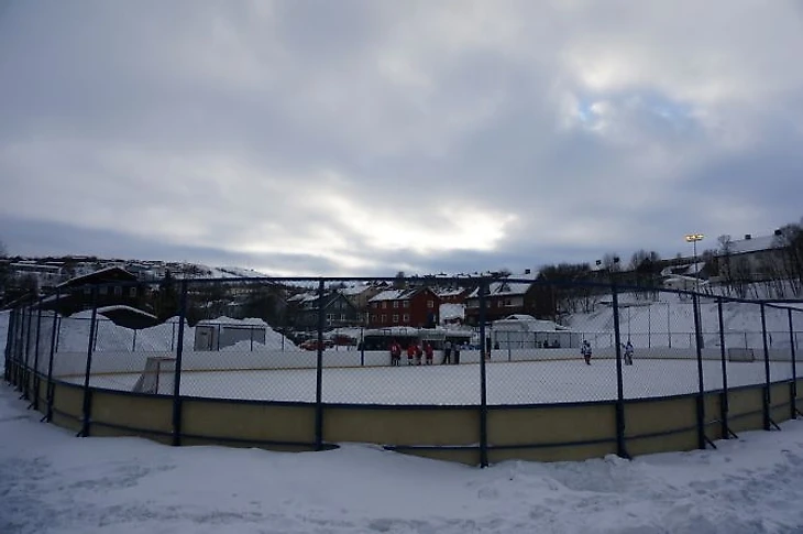 В Киркенесе всё в принципе рядом от всего, вот и хоккейная коробка совсем рядом от центра. Удивительно, что не только нет трибун, но и вообще стоять практически негде. То ли это причина, то ли следствие, но местные жители даже на единственный в году крупный турнир почти не приходят. Вообще складывается ощущение, что норвежцев интересуют только лыжи (их стоимость, и где приобрести) – на обложках газет сплошной Петер Нортугг, разрывающий всех на чемпионате мира. В Киркенесе же болельщики оказываются в основном русскоязычными, хотя атмосфера дружественная, бесплатно раздают чай и сосиски, а звукорежиссёр на площадке вообще очень хорош – не забывает включать гимны стран и разнообразные музыкальные заставки.