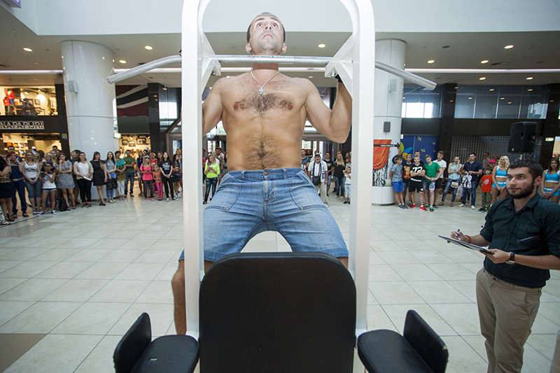 Ну, а затем началось самое интересное: в игру вступили настоящие мужчины! Сперва участникам было предложено подвердить свою состоятельность на глазах широкой общественности в полуфиналах. Правила очень просты: кто подтянулся больше, тот и идет в финал. Надо отметить, у снарядов в эти минуты было действительно жарко!