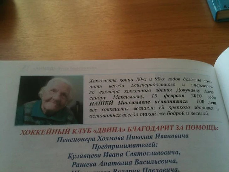 Попытался узнать, жива ли еще Александра Максимовна (с момента выхода книги прошло 5 лет), но, вроде бы, к сожалению всё-таки уже нет. В любом случае, молодцы хоккеисты, что не забыли про бабушку.