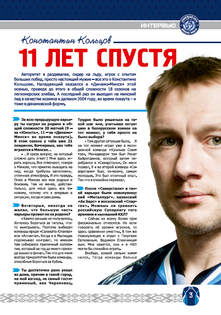 - …И сразу вопрос, на который сложно дать ответ:) Мне здесь играть хорошо. Все отмечают, говоря о Минске, что приятно выходить на лед, когда трибуны заполнены, отличная атмосфера. И это правда. Плюс в Минске все мои родные и близкие. Тем не менее, действительно, для меня здесь все по-новому, потому что я впервые в ситуации, когда играю дома.