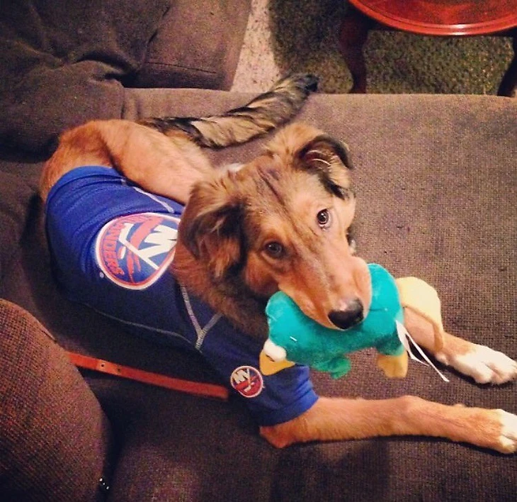 Умиления пост. Собаки, которые вместе с хозяевами болеют за команды НХЛ «Айлендерс» и «Чикаго»