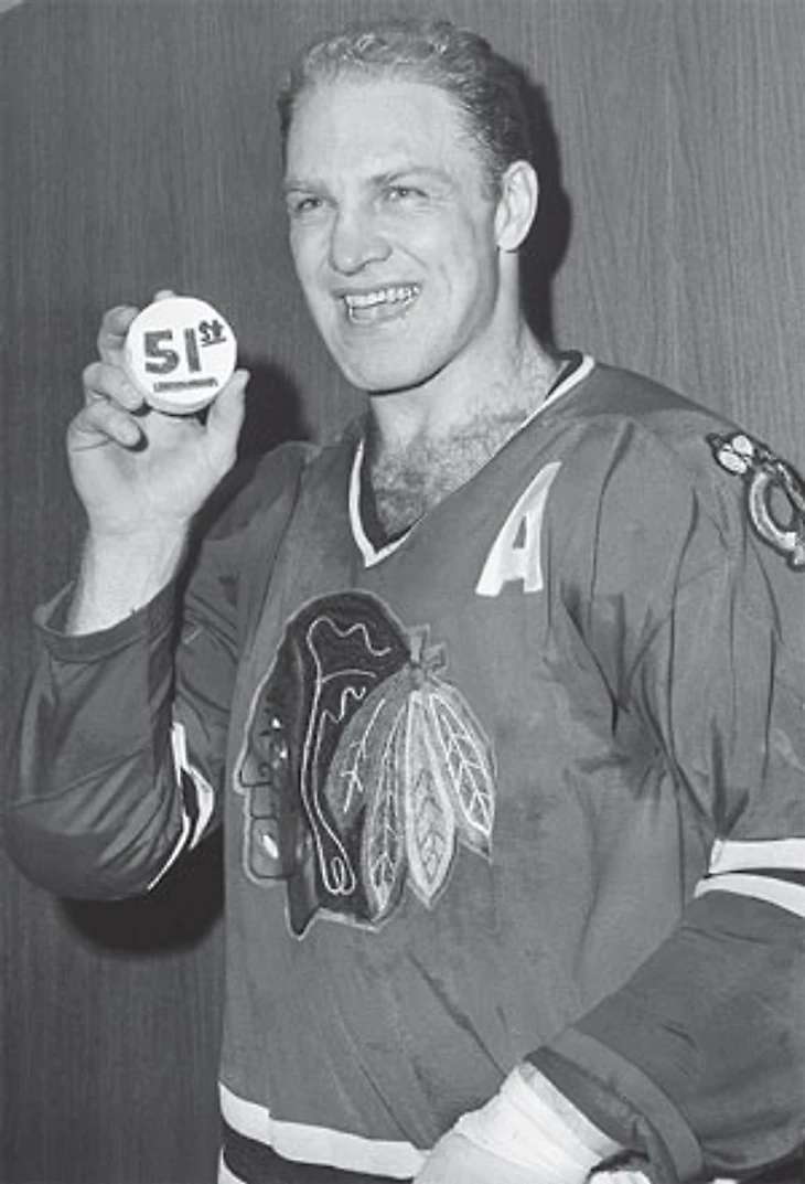 А вот с "полтинниками" было куда лучше - рубеж в 50 шайб покорился 3 игрокам - 3 раза Бобби Халлу, а так же по разу Морис Ришару и Берни Джеффриону.