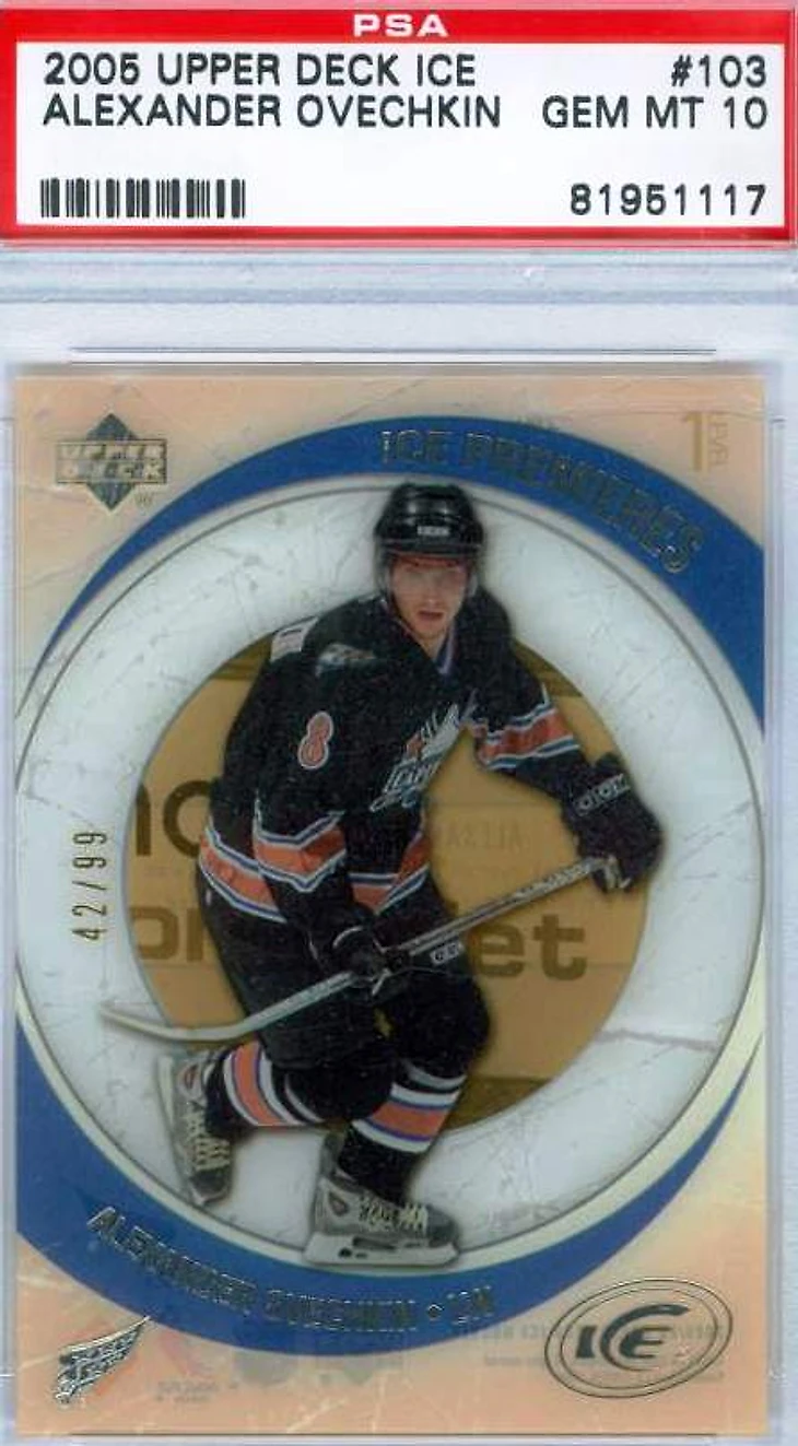 Ну и на первом месте еще одна карта Александра Овечкина. На этот раз карта новичка из коллекции Upper Deck Ice 2005-06. Новички из этой коллекции одни из самых ценных в хобби вообще и точно самые ценные без автографов и кусков форм. Достигается это за счет интересного дизайна, небанального исполнения (это одни из первых, если не первые, пластиковые карты с прозрачными вставками) и, конечно же, небольшого тиража (карты главных новичков года выпускаются в количестве всего 99 шт.). Все это вылилось в итоговую цену за такую карту 6500$.