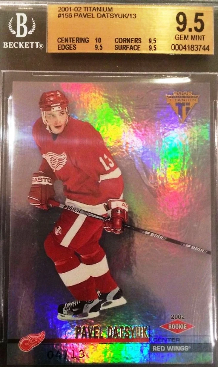 На четвертом месте Павел Дацюк и параллелка его карточки новичка из коллекции Titanium 2001-02. Тираж равен игровому номеру игрока. В случае с Дацюком это всего 13 шт. Но даже при редкости карты, популярности коллекции и её большому тиражу (чтобы достать карту этой параллели, надо было перелопатить не один десяток блоков) цена в 2425$ удивляет.
