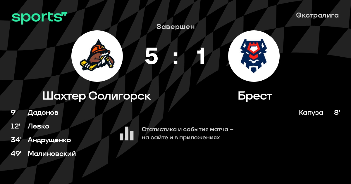 В прошедшем матче в рамках турнира Экстралига состоялась встреча команд Шахтер Солигорск - Брест в городе Солигорск (Беларусь) на стадионе Ледовый дворец спорта Солигорск (вместимость - 1800)