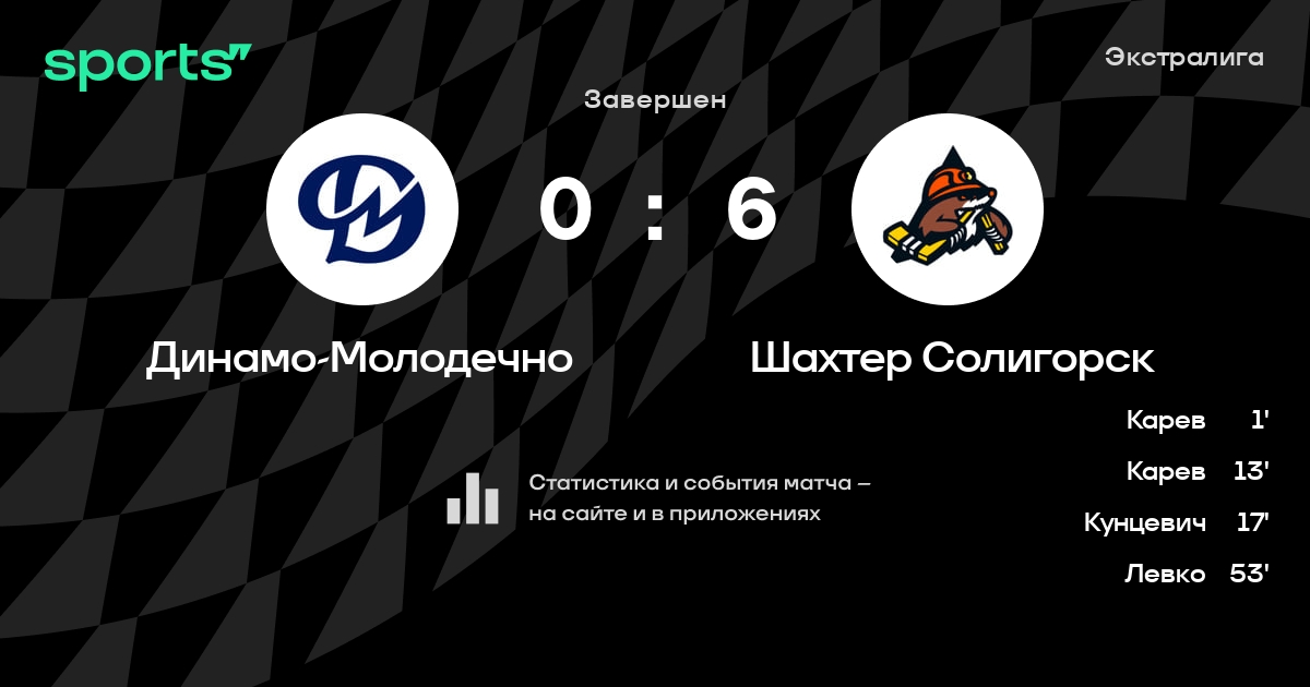 В прошедшем матче в рамках турнира Экстралига состоялась встреча команд Динамо-Молодечно - Шахтер Солигорск в городе Молодечно (Беларусь) на стадионе Ледовый дворец Молодечно (вместимость - 2000)