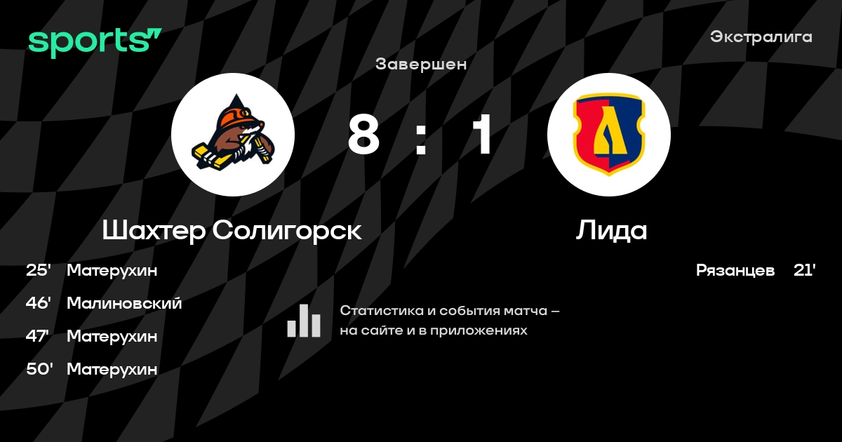 В прошедшем матче в рамках турнира Экстралига состоялась встреча команд Шахтер Солигорск - Лида в городе Солигорск (Беларусь) на стадионе Ледовый дворец спорта Солигорск (вместимость - 1800)